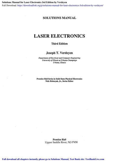 Read Online LASER ELECTRONICS 3RD EDITION SOLUTION MANUAL Library Binding